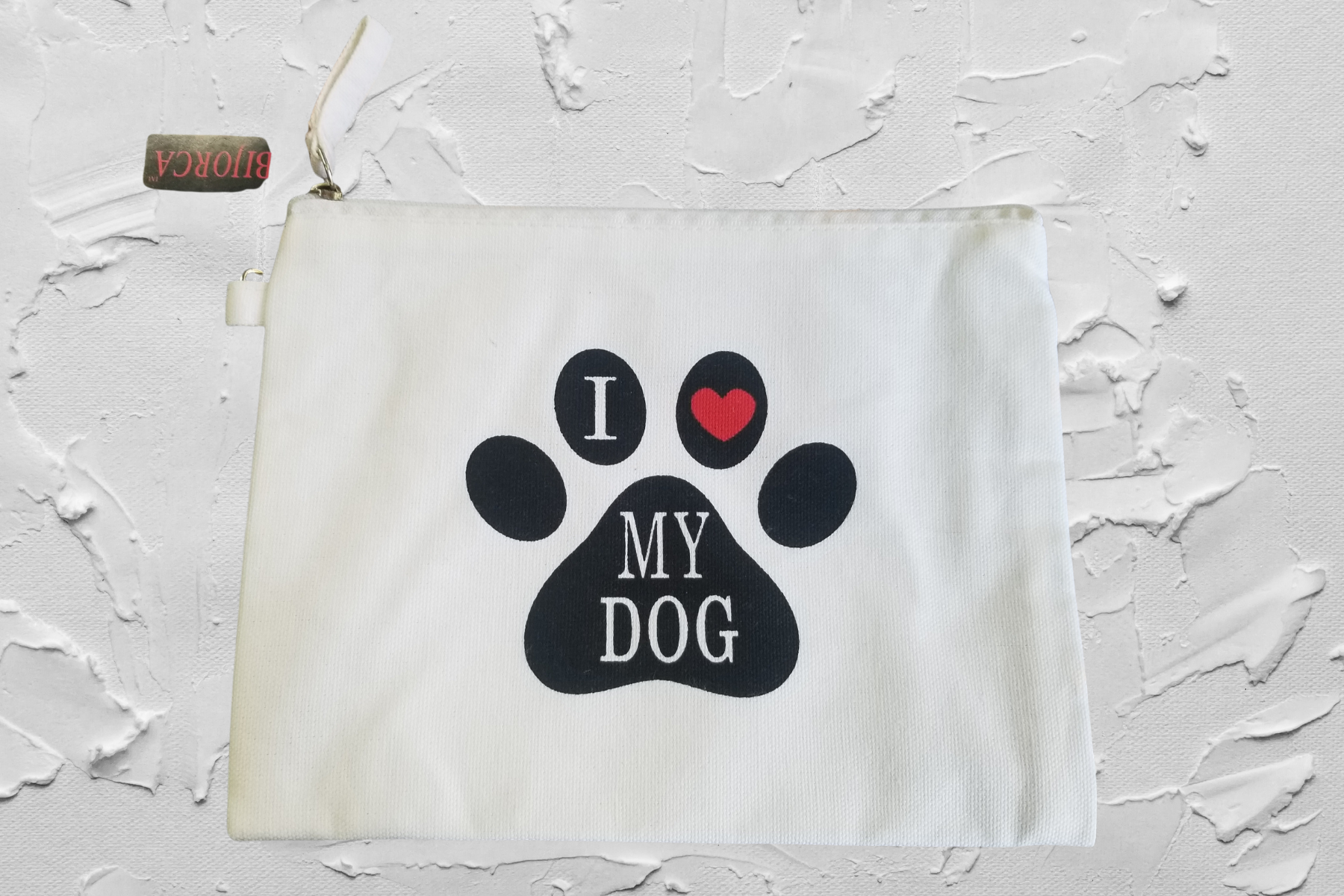 9"x7" Canvas Bag. Great for makeup or traveling necessities. Zippered opening.