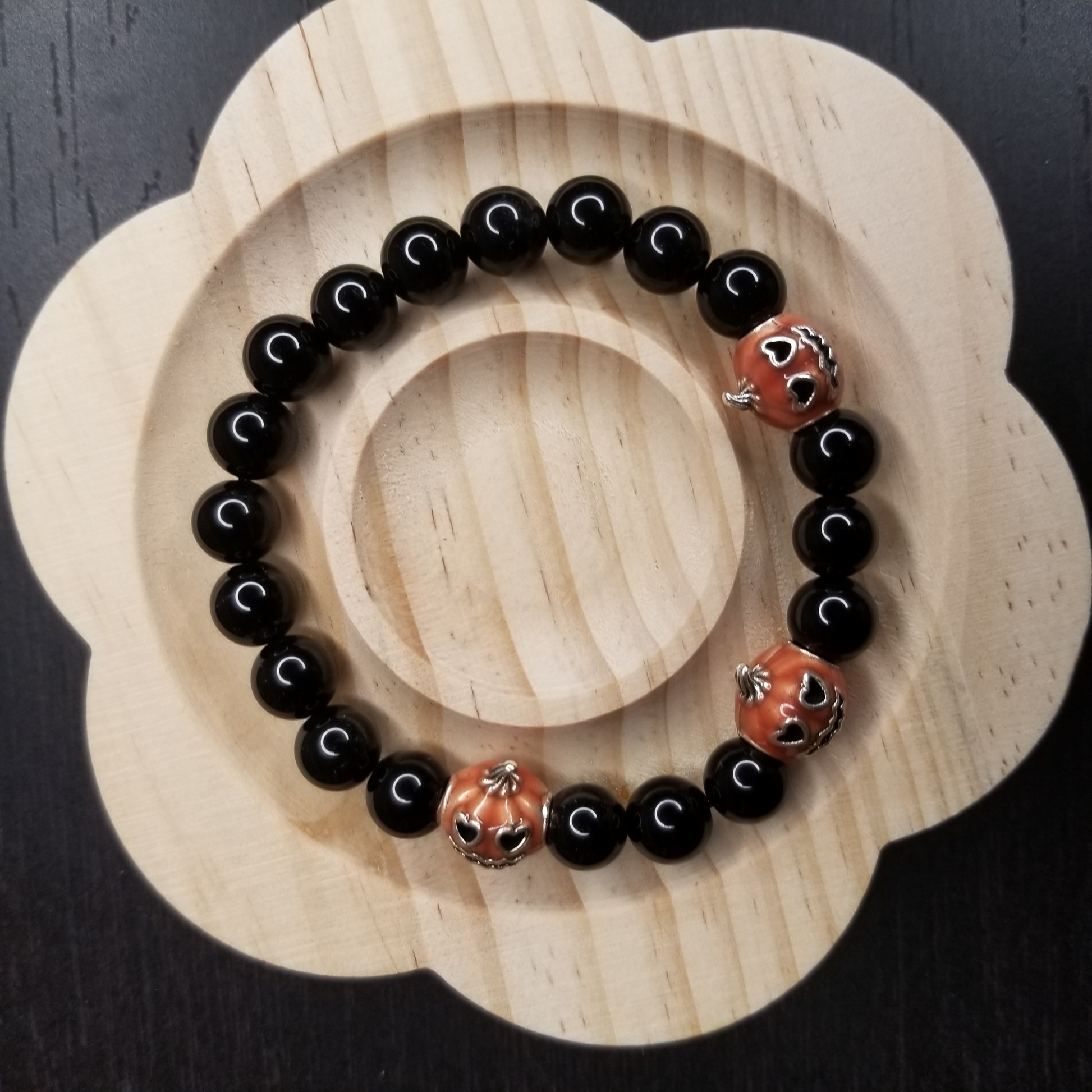 Genuine Crystal Pumpkin Charm Stretch Bracelet