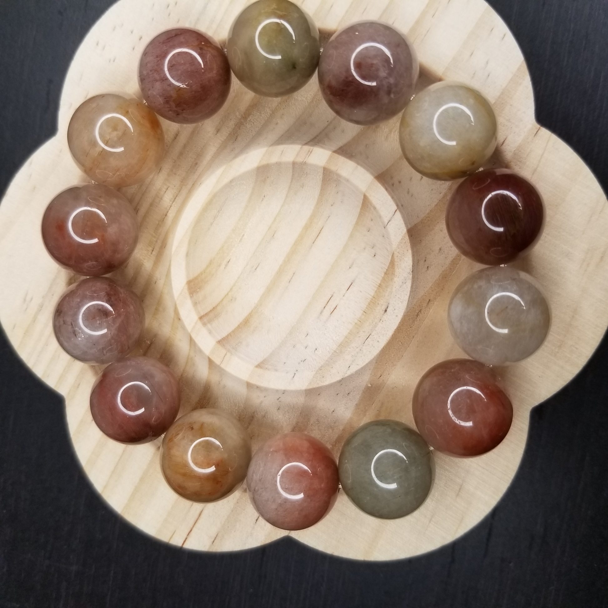 Genuine Rainbow Rabbit Hair Quartz Chunky Stretch Bracelet