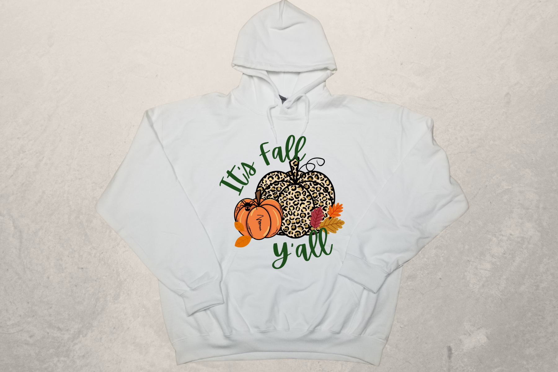 It's Fall Y'all Leopard Print Pumpkin Sublimation Hoodie with Front Pocket